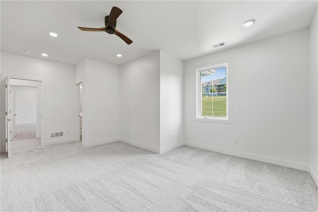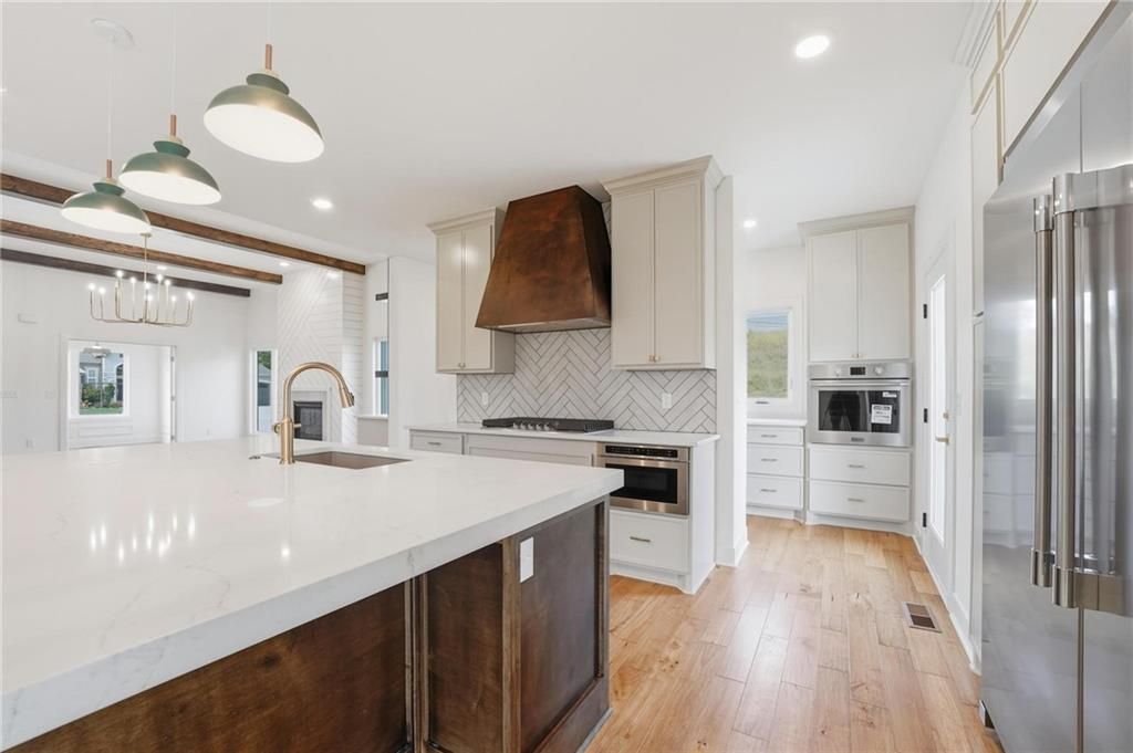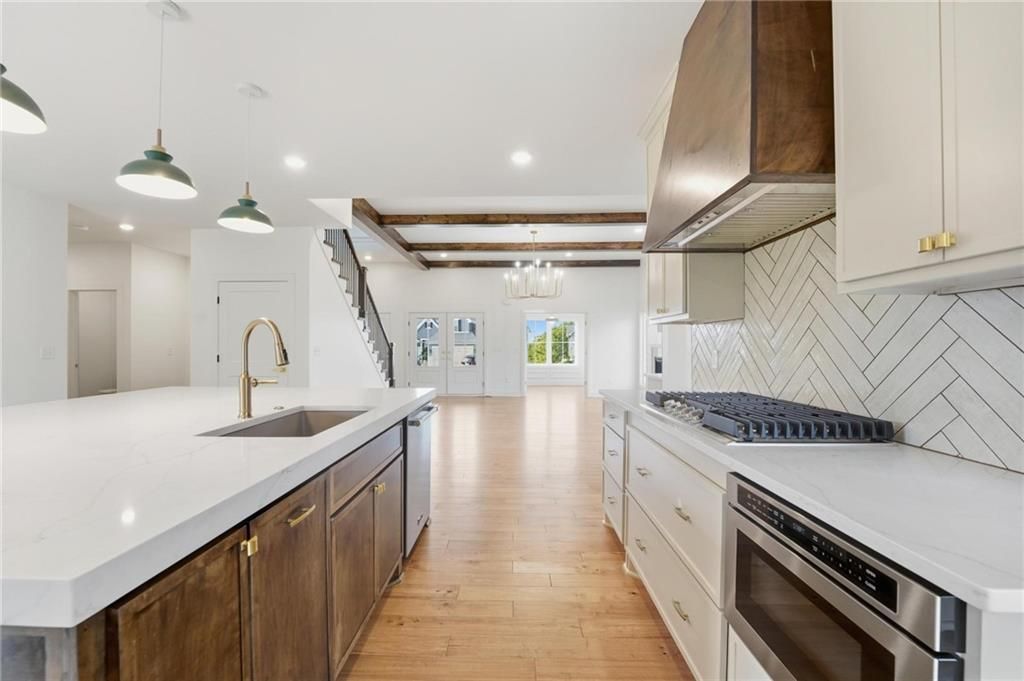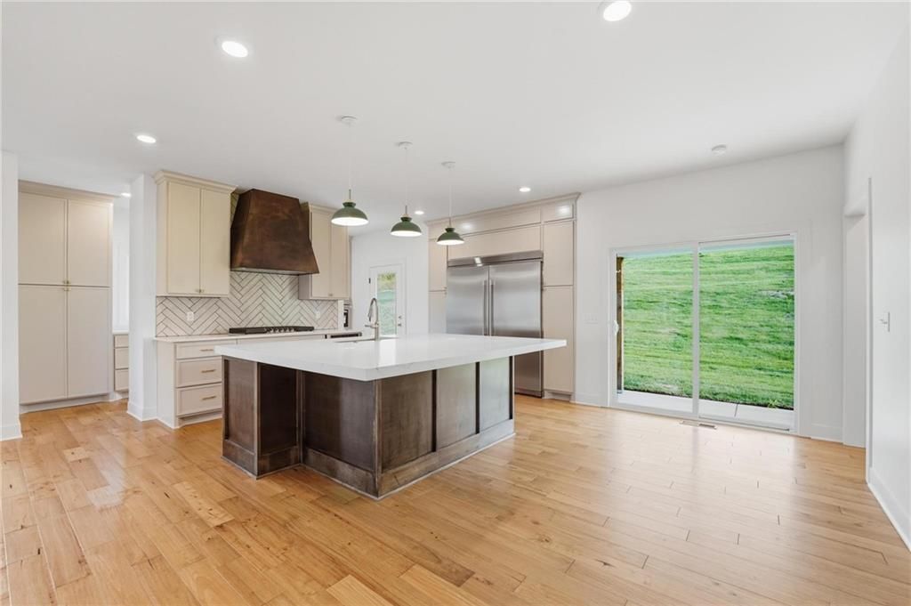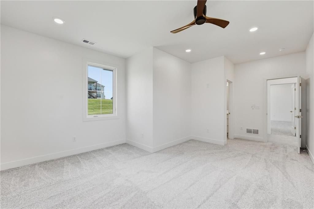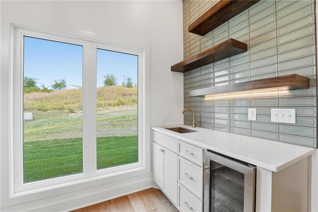 Luxurious Living at The National Golf Community! Discover exquisite finishes and modern design in this stunning home, featuring designer lighting, rich pecan flooring, large format tiles, high-end countertops, and beautifully stained cabinetry with exposed beams. Enjoy upgraded flooring throughout, dual-zone heating and cooling, and expansive outdoor spaces including a grill patio and covered patio on a generous lot at the end of a quiet cul-de-sac. The gourmet kitchen is a chef's delight, equipped with a 36" gas cooktop, a convenient drawer microwave, and as a special builder bonus, a full-sized refrigerator and freezer are included! The scullery enhances functionality with additional prep space, a full-sized sink, and open shelving for easy access to kitchen essentials. Retreat to the main-level master suite, featuring a spa-like bathroom with an oversized glass shower, a luxurious soaking tub, a dedicated vanity area, and stunning Taj Mahal Quartz countertops - an elegant touch typically reserved for custom homes. The master closet boasts floor-to-ceiling built-ins and seamlessly connects to the laundry room, which includes a sink and quartz countertop for added convenience. Upstairs, the spacious loft provides extra living space, while all bedrooms feature walk-in closets and private ensuite bathrooms - eliminating the need to share! The main level office is enhanced by elegant glass French doors, providing a sophisticated workspace. Entertain with ease at the wet bar, complete with a beverage fridge and stylish floating shelves. The expansive lower level includes a suspended garage and is situated on a cul-de-sac lot with adjacent land owned by the HOA, ensuring privacy and tranquility. Residents enjoy easy access to the subdivision pool and play area, all within the highly-rated Park Hill South High School. Become part of this vibrant golf community, with additional perks available through social and golf club memberships to The National.