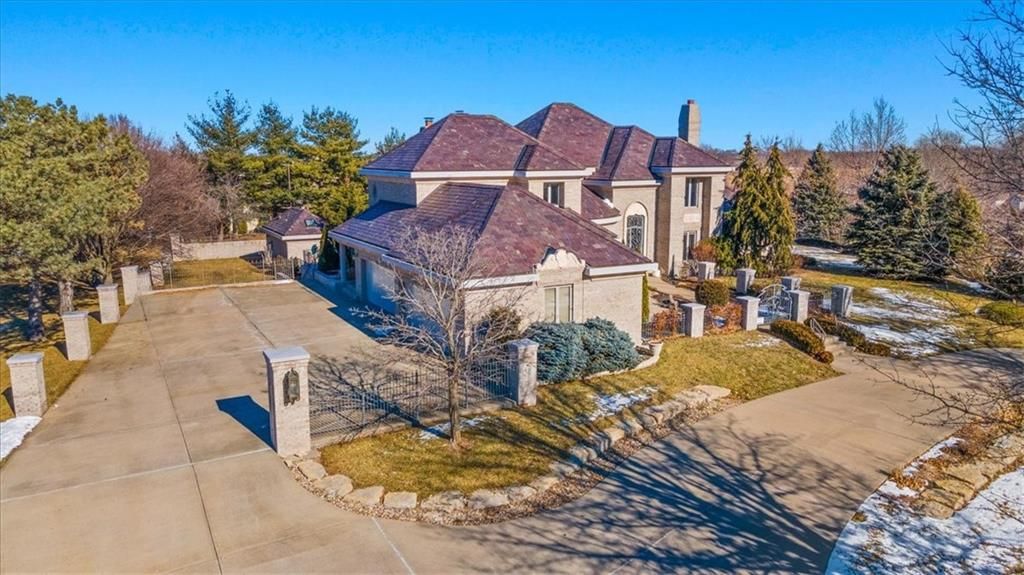 SECURITY AND SUSTAINABILITY*Stylish 1.5 Story Home greets you with Secured Entry*Winding Staircase*Styled with Faust Wrought Iron*Lobmeyr Chandelier*Two-Story Floor to Ceiling Windows in Great Room*Burmise Granite Flooring*5 Fireplaces*Private Secured Office*Multiple 'SAFE ROOMS'*Professionally Designed and Engineered Incorporating Construction with Iron Beams, Metal Studs, Steel Plates (See Construction Pics in Supplements)Wrapped in king Brick, Purple Vermont Slate Roof over Perlite Underlayment, Concealed Gutters*35,000 KW Cummings Backup Power System add to the Sustainability of this Quality Crafted Home. Acre Estate within Walking Distance to Tiffany Greens Clubhouse*Easy Access to Hospitals, Schools, KCI Air Terminal *Shopping**Seller would Consider TRADE FOR FARM IN CLAY OR PLATTE COUNTIES.
