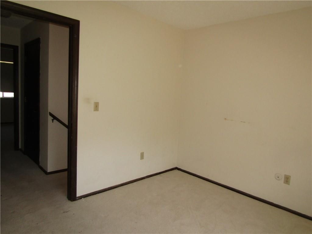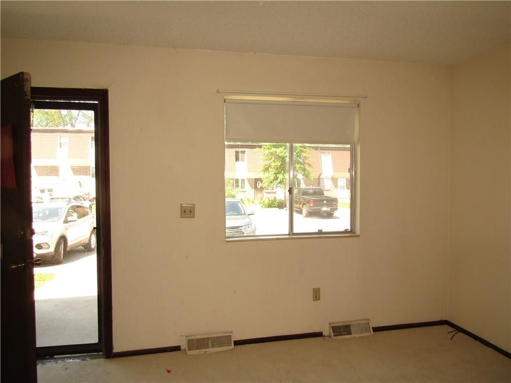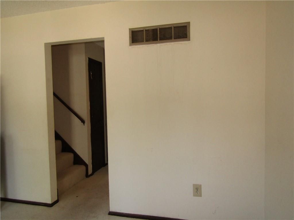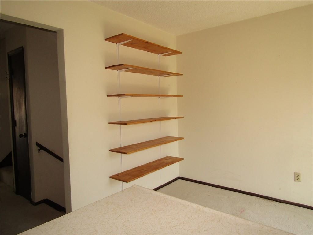 Two story townhome. Carpeted living room steps to the hallway with 1/2 bath, kitchen with vinyl floor, large pantry, and carpeted dining area. The dining area has a wall of shelves and sliding glass door to the balcony with overlooks the fenced backyard. The two bedrooms upstairs are serviced by a hall bath with tub/shower combination. Each bedroom has double closets. The walkout basement has partitions, but is not finished. Laundry hookups in basement. One place to park per owner and one guest parking. HOA takes care of lawn and trash pickup. Selling as is.