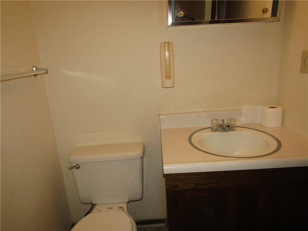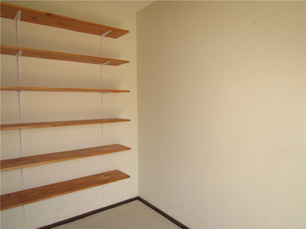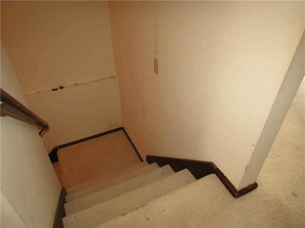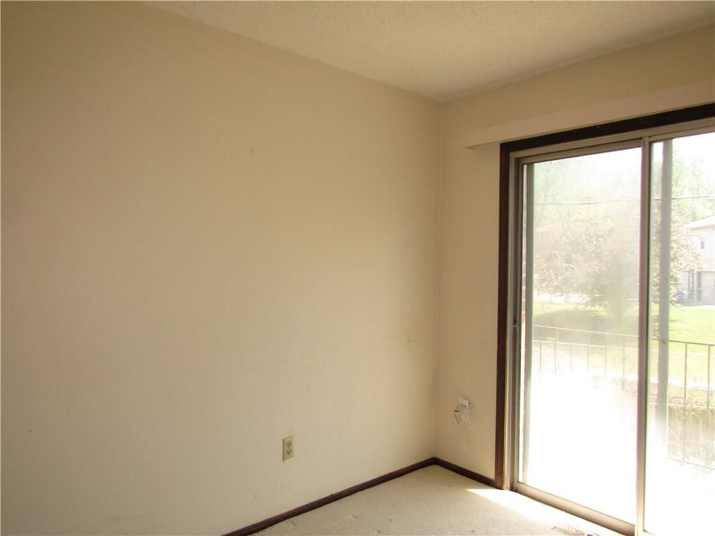 Two story townhome. Carpeted living room steps to the hallway with 1/2 bath, kitchen with vinyl floor, large pantry, and carpeted dining area. The dining area has a wall of shelves and sliding glass door to the balcony with overlooks the fenced backyard. The two bedrooms upstairs are serviced by a hall bath with tub/shower combination. Each bedroom has double closets. The walkout basement has partitions, but is not finished. Laundry hookups in basement. One place to park per owner and one guest parking. HOA takes care of lawn and trash pickup. Selling as is.