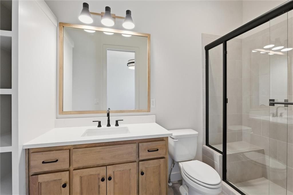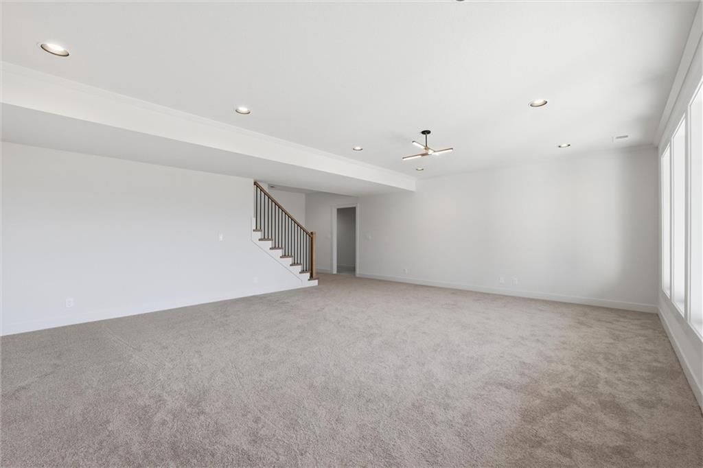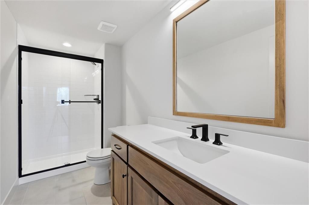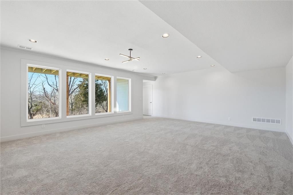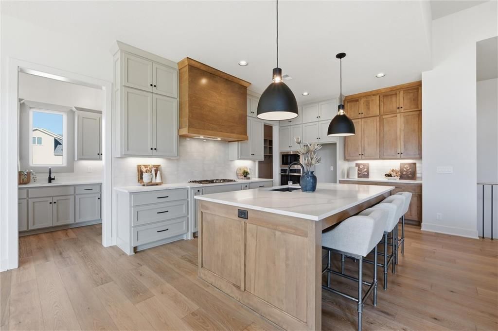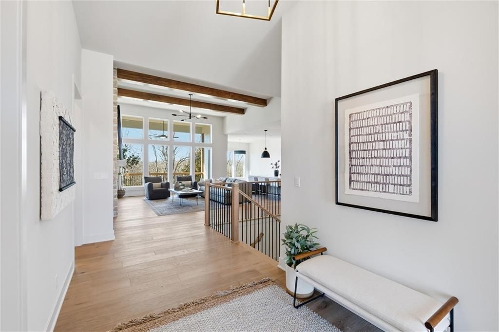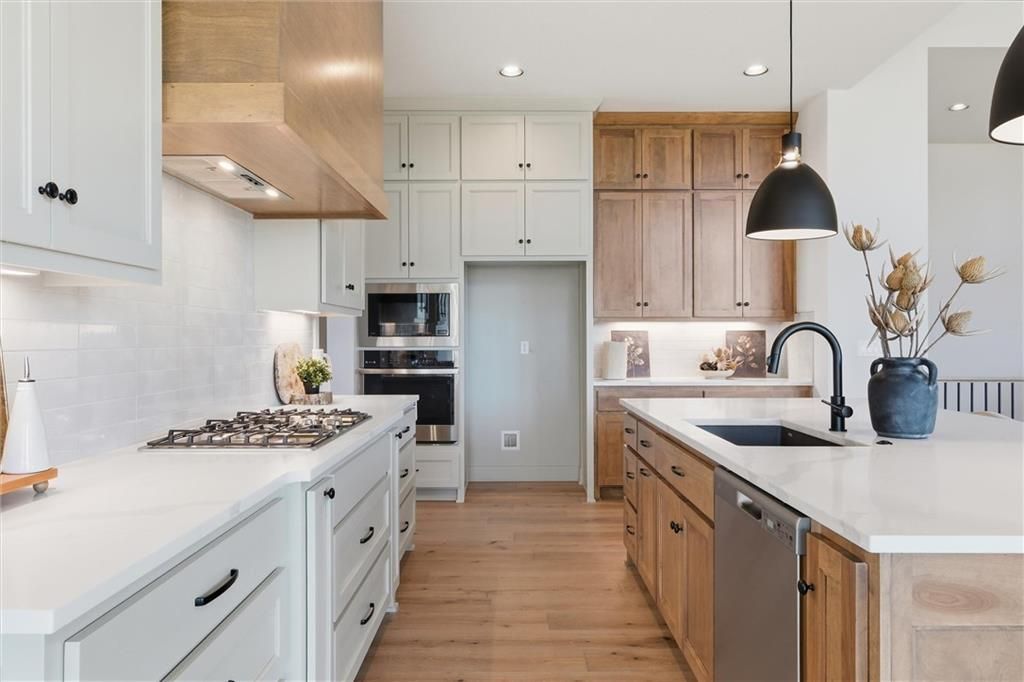 MOVE-IN READY! Introducing the NEW Oakmont reverse 1.5-story by Bickimer Homes, thoughtfully designed for elevated everyday living and effortless entertaining. Situated on a picturesque wooded walk-out homesite, this 4-bedroom, 4.5-bath home with a 3-car garage showcases refined finishes and intentional design throughout. The main level offers two bedrooms and two-and-a-half baths, including a flexible front bedroom ideal for a private home office or guest suite with full bath access. At the heart of the home, a stunning kitchen with oversized island anchors the open-concept layout, flowing seamlessly into the vaulted great room featuring exposed beams, custom built-ins, and a striking floor-to-ceiling stone fireplace. A spacious dining area is surrounded by large windows capturing serene treed views. Designed with entertaining in mind, the kitchen is complemented by a walk-through prep pantry with cabinetry, counter space, and sink, connecting directly to the grilling deck - perfect for hosting and everyday convenience. Outdoor living continues with a covered deck and covered patio, creating multiple spaces to relax and gather while overlooking the wooded greenspace. The walk-out lower level expands the living space with a generous recreation room, large windows for natural light, two additional bedrooms with en-suite baths, and ample storage. Located on Lot 56 in Enclave at Manchester Park, this home is tucked among mature trees in a quiet yet conveniently located community.