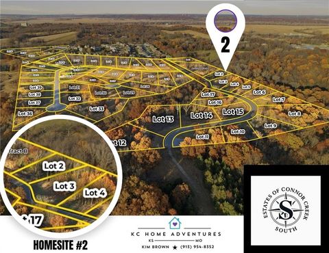 Where Luxury Breathes & Dreams Break Ground! Discover a place where the horizon stretches wider, the air feels lighter & the promise of your future home begins long before the foundation is poured. On the edge of Kansas City, this new community is set apart featuring a rare collection of homesites that have been carved into the rolling landscape just beyond the Legends in Kansas City! Here, you will find a mix of sprawling .5+ acre to 1+ acre estate lots that invite you to design a residence worthy of your dreams. Picture a custom-crafted sanctuary perched above sweeping views, surrounded by mature trees, open skies, and the quiet rhythm of nature - all set along winding paved streets with curbs, gutters, + the ease of city sewer. This is where countryside serenity meets effortless access in the award-winning Piper School District. A premier location just 20 minutes from KCI International Airport, the historic charm of Weston, the riverfront elegance of Parkville, the vibrant culture of Lawrence & the stability of Fort Leavenworth. You're also around the corner from The Legends premier shopping, Homefield KCK Showcase Center, elite dining, endless entertainment, Sporting events, championship golf courses, the natural sanctuary of WYCO Lake & chart-topping musical performances at Azura Amphitheater. Here, convenience is always within reach - yet life feels wonderfully private. Completed Amenities help set the tone for elevated living w/o the wait. Those seeking guidance, our onsite preferred custom builder stands READY to collaborate or help you find the right builder & turn your dreams into reality! === This is not simply a place to build a home, it is the beginning of your story on Homesite #2. Take a scenic drive & preview this EXCLUSIVE collection of just 56 beautiful homesites, each tucked into the reserved hills of this BRAND-NEW community, where your estate begins with a dream & rises into a life lived beautifully in the heart of Kansas City!